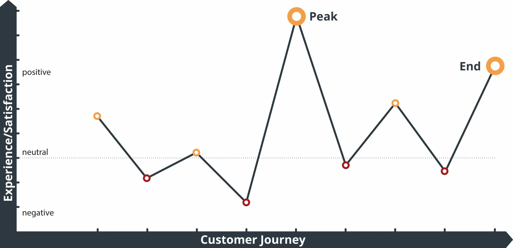 So, when you use the Peak-End rule for the UX, you’d want to pay attention to the highlights of the user journey and ensure that the last steps and peak stages leave a positive impression.